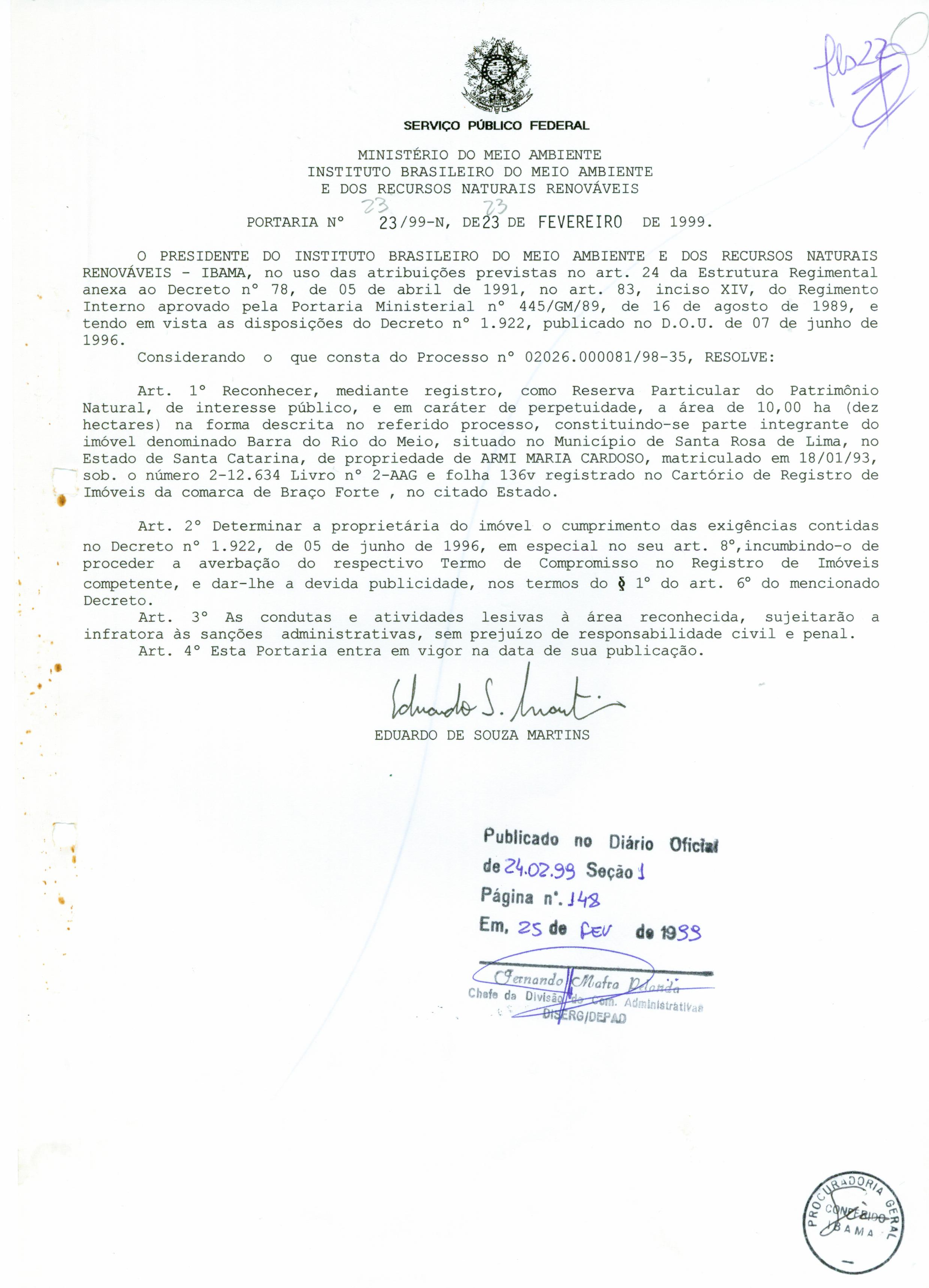 A RPPN foi reconhecida pelo órgãoInstituto Chico Mendes de Conservação da Biodiversidade (ICMBio)